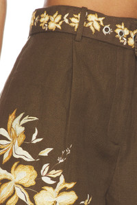 - Self: 55% linen 45% cotton Lining: 100% cotton - Made in India - Dry clean only - Zip-fly with hook-and-bar closures Detachable belt included - Hidden side seam pockets - Lightweight woven textile with floral embroidery and bead embellishments - Item not sold as set - Shorts measure approx 13.5" in length - Revolve Style No. BENE-WF25 - Manufacturer Style No. HN-BOTA-5836