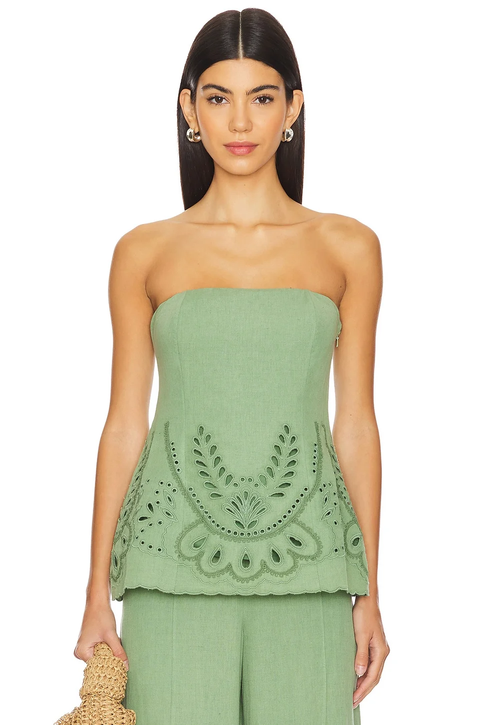- Self: 55% linen 45% cotton Lining: 100% cotton - Made in India - Dry clean only - Hidden side zipper closure - Eyelet fabric design - Item not sold as a set - Revolve Style No. BENE-WS134 - Manufacturer Style No. HN-ALYA-5841
