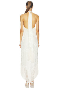 - 100% viscose - Made in India - Dry clean only - Fully lined - Halter neck closure - Cross tied neck detail with tassel trim - Deep scoop back and keyhole chest detail - Revolve Style No. BENE-WD423 - Manufacturer Style No. HN-AURA-6186