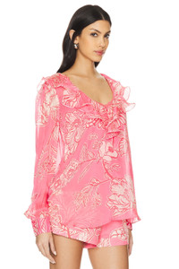 - Self: 100% viscose Lining: 88% nylon 12% lycra - Made in India - Dry clean only - Pull-on styling - Buttoned cuffs - Includes slip lining - Lightweight chiffon fabric - Revolve Style No. BENE-WS133 - Manufacturer Style No. HN-ASHA-5894