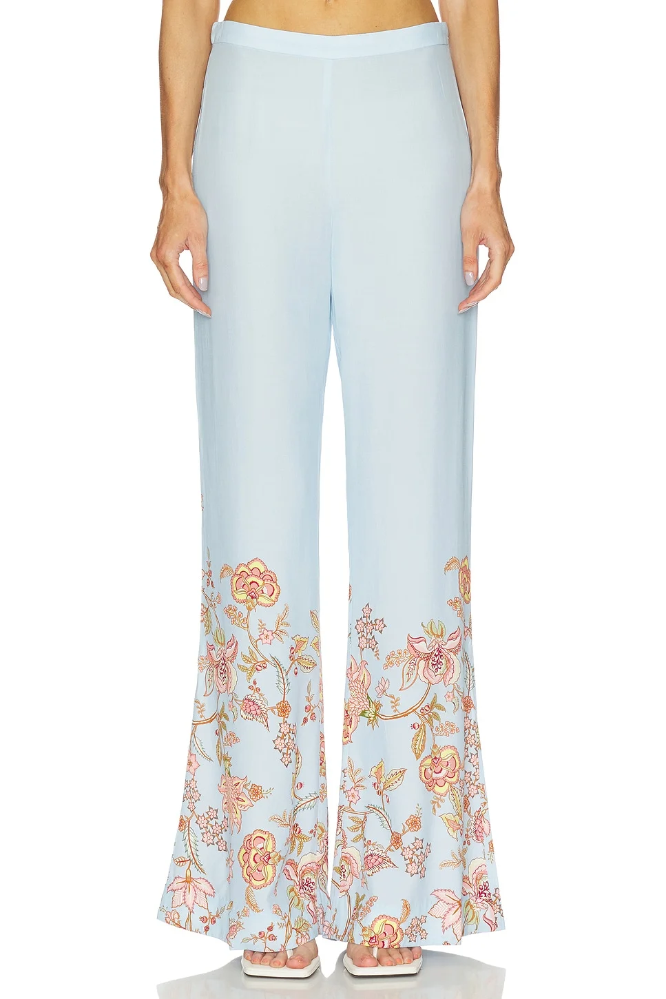 - 100% viscose - Made in India - Dry clean only - Side zipper closure - Flare bottoms - Paisley design.26" at leg opening - Revolve Style No. BENE-WP44 - Manufacturer Style No. HN-RIAH-6180