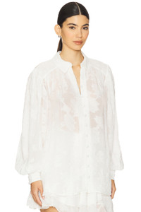 - 100% viscose - Dry clean only - Front button loop closure - Floral jacquard detailing - Button loop cuffs - Midweight crepe de chine fabric - Item not sold as a set - Garment is made with a semi-sheer fabric, undergarments can show through - Revolve Style No. BENE-WS160 - Manufacturer Style No. HN-RYKA-WHT-5887