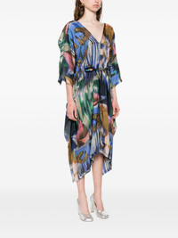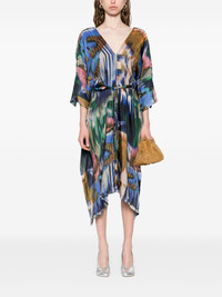 belted midi dress Highlights - Imperial blue - V-neck - Half-length sleeves Imported Composition Cupro 55%, Viscose 45% SIZE & FIT Model measurements Height 5 ft 10 in(1.79 m) Bust/Chest 35.43 in(90 cm) Hips 35.03 in(89 cm) Waist 25.19 in(64 cm) FittingInformation Designed to be unstructured, offering a loose fit throughout The adjustable tie waist gives a more adaptable and personalised fit Made from a midweight non-stretch fabric Washing instructions Machine Wash