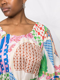 Birds print midi dress Never one to shy away from colour and print, Henrik Vibskov presents the Birds print dress as part of its SS22 offering. Boasting wide short sleeves, an all-over geometric print falls to a flared hem. Imported Composition Silk 100% SIZE & FIT Model measurements Height 5 ft 11 in(1.8 m) Bust/Chest 31.49 in(80 cm) Hips 36.61 in(93 cm) Waist 24.4 in(62 cm)