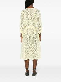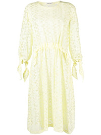 Bulk jacquard midi dress Henrik Vibskov's pale-yellow Bulk dress is a sartorial narrative on a postage box as ‘a vessel that inhabits and protects precious items.’ It’s crafted from airy voile with a jacquard pattern loosely modelled after bubble wrap and a gathered waist threaded with knotted ties for a securely packaged touch. Highlights - Light yellow - Voile - Patterned jacquard - Round neck - Long sleeves - Drawstring cuffs - Gathered tie detailing - Two side slit pockets - Mid-length - Straight hem - Unlined Imported Composition Viscose 81%, Polyamide 19% SIZE & FIT Model measurements Height 5 ft 10 in(1.77 m) Bust/Chest 29.92 in(76 cm) Hips 34.25 in(87 cm) Waist 23.62 in(60 cm)