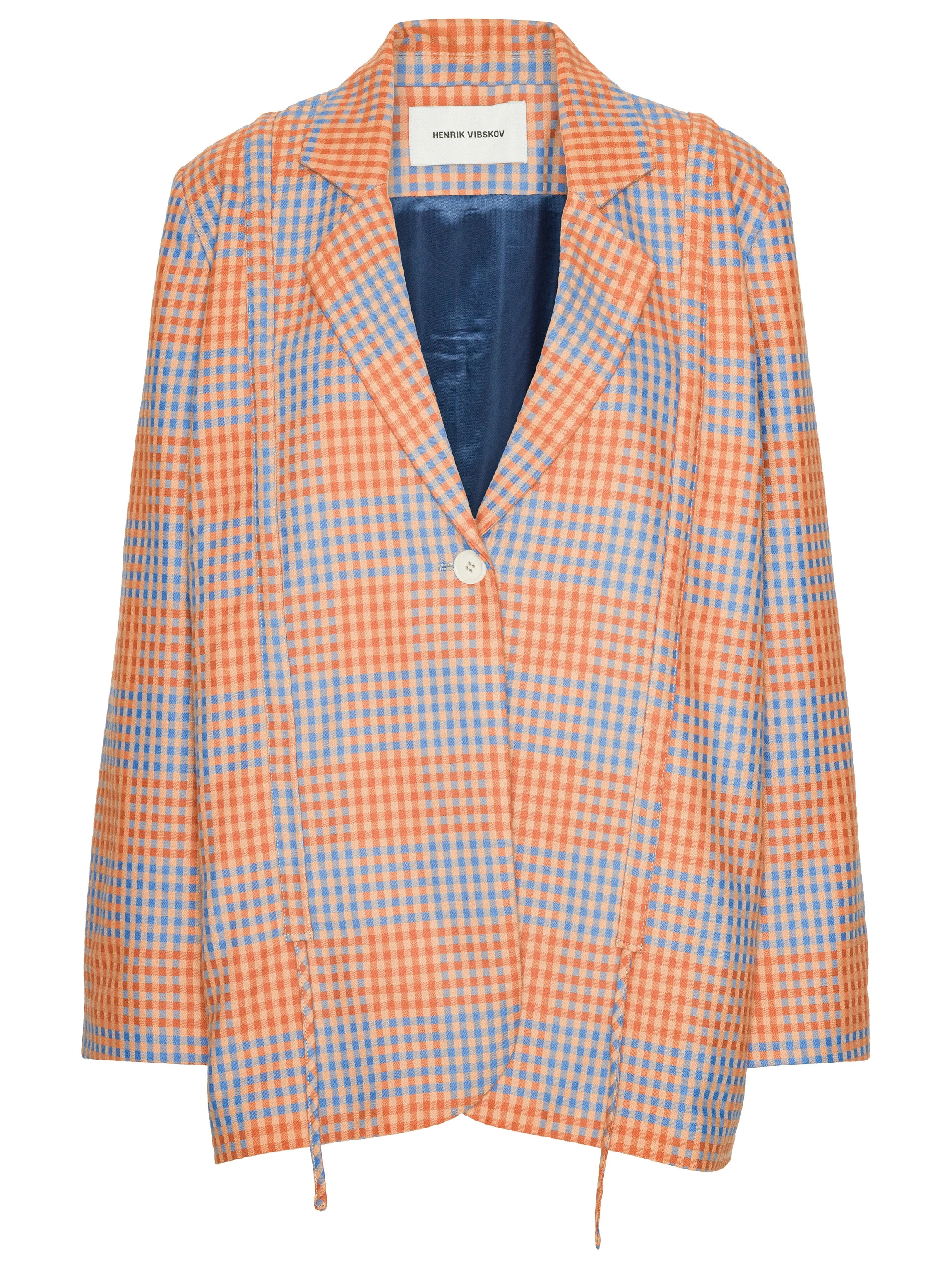 Backpack Blazer in Zuzu Checks from Henrik Vibskov AW25 Key Collection Highlights - multicolour checks - blazer - one front button closure - adjustable drawstring details - scrunched design Model is 181cm tall and is wearing a size S Made in Bulgaria Designer ID: AW25KEY-F608 Colour ID: Zuzu Checks Materials 100% Organic Cotton
