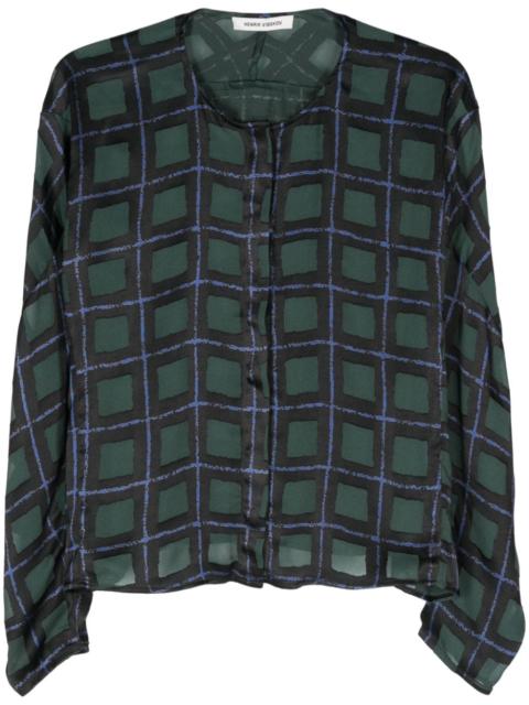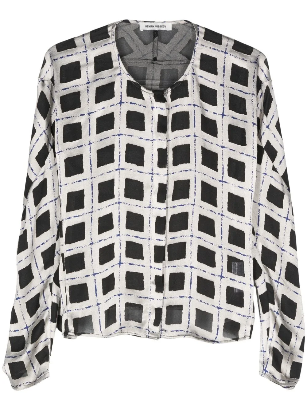Dimness blouse Highlights - Light beige - Black - Textured finish - Concealed front button fastening - Windowpane print - Round neck - Long sleeves Imported Composition Viscose 67%, Polyester 33%