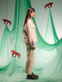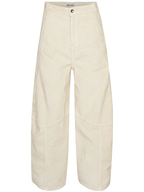 Dusk Corduroy Pants in Ecru from Henrik Vibskov's SS25 Studio Collection 'The Orchestra of the Soft Assistance' Highlights - light beige - high waisted - button and zip closure - ballon legs effect - pockets The models are 178 cm and are wearing size small Made in Portugal Designer ID: SS25STUD-F502 Colour ID: 150 Ecru Materials 100% Organic Cotton