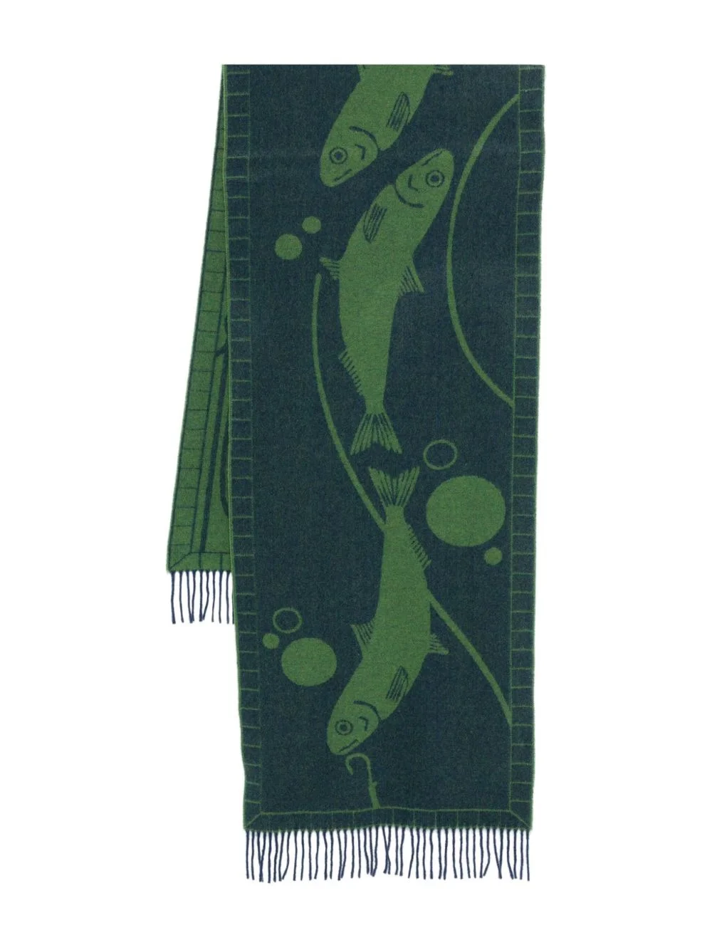 fish-print fringed scarf Highlights - Dark blue - Green fish print - Fringed edges - Woven Imported Composition Wool 100%