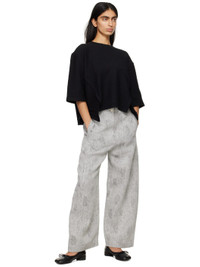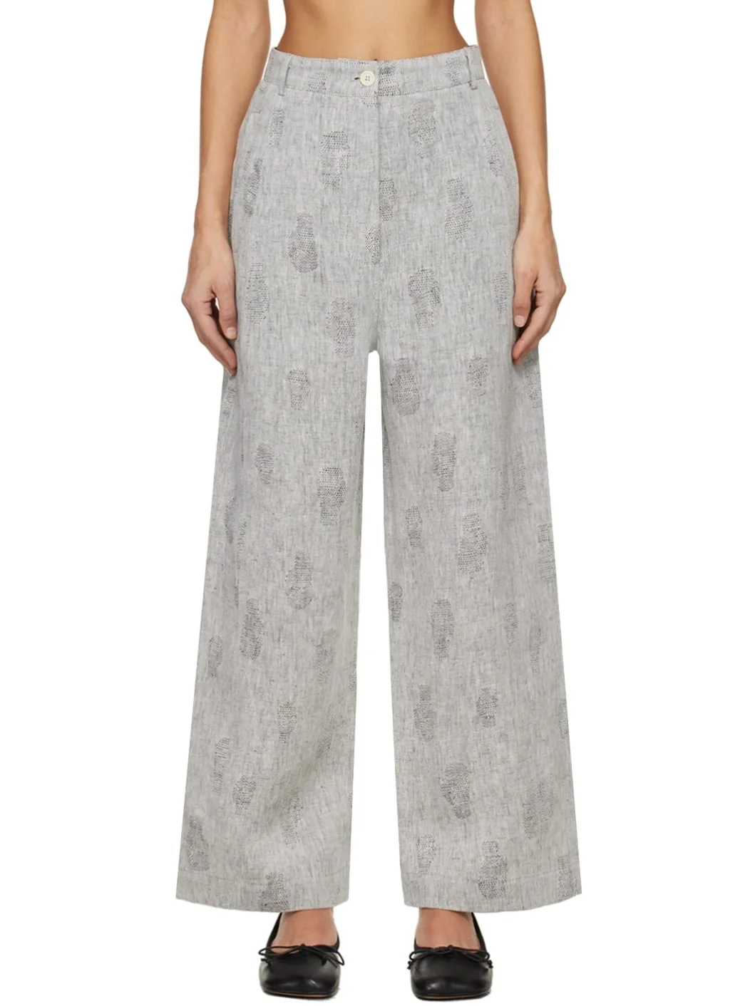 Wide-leg linen oxford cloth trousers. Jacquard graphic pattern throughout. · High-rise · Belt loops · Three-pocket styling · Zip-fly · Corozo hardware Supplier color: Grey melange gloves 100% linen. Made in Bulgaria 241392F087001