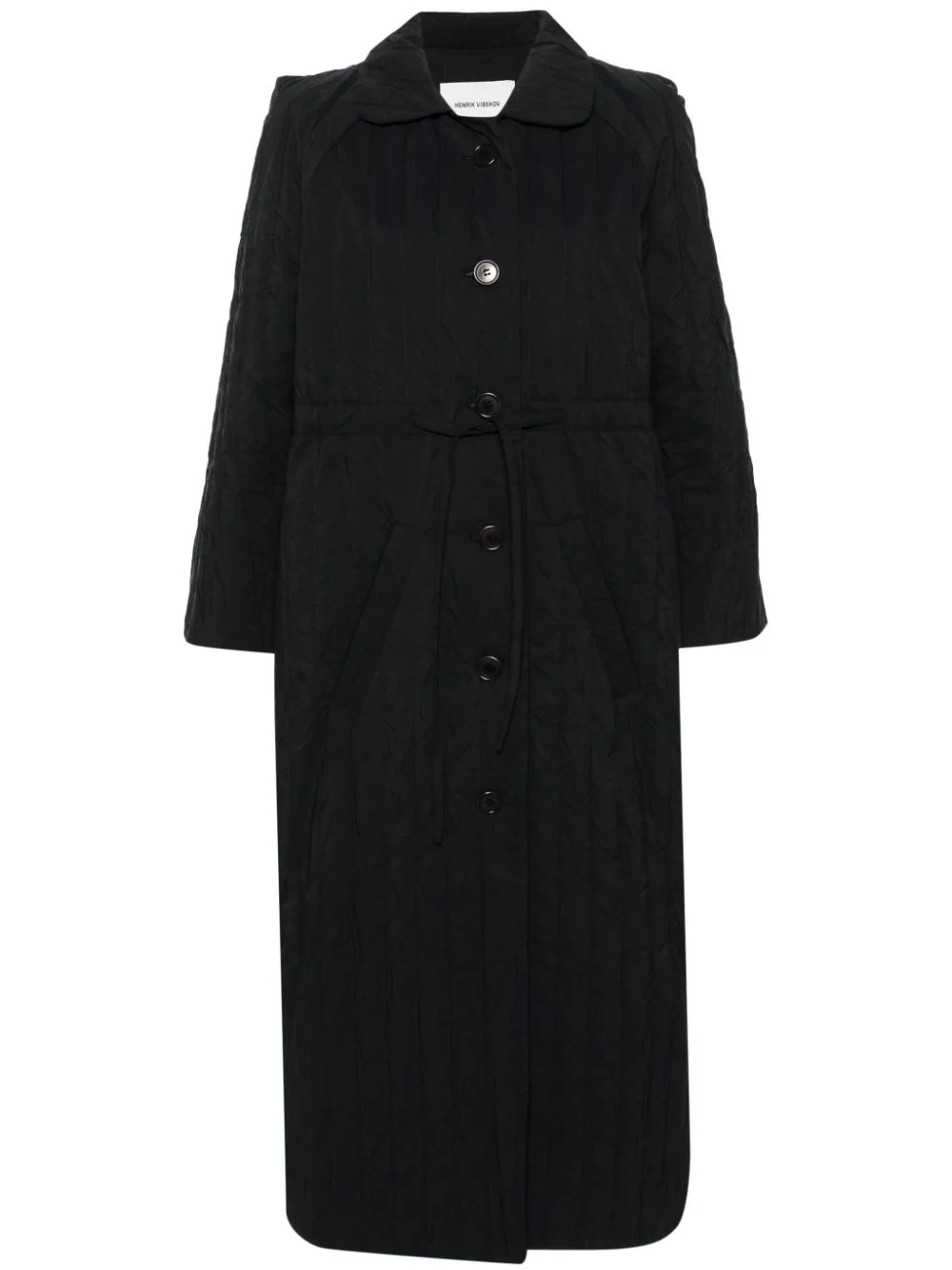 Long Bind quilted coat Highlights - Black - Quilted - Crinkled finish - Notched lapels - Long sleeves - Drawstring waist - Two front welt pockets - Straight hem - Full lining - Front button fastening and rear tie fastening Imported Composition Outer: Recycled Nylon 72%, Organic Cotton 28% SIZE & FIT Model measurements Height 5 ft 9 in(1.76 m) Bust/Chest 31.88 in(81 cm) Hips 35.43 in(90 cm) Waist 24.8 in(63 cm) FittingInformation Designed to be unstructured, offering a loose fit throughout The adjustable drawstring means that you can adjust this piece’s fit to suit your comfort and preference Made from a quilted non-stretch fabric, giving it no natural elasticity This piece fits true to size – take your usual size