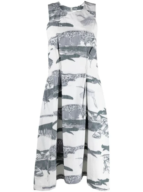 New Free Dress in Black White Ikat from Henrik Vibskov's Spring Summer 2023 collection 'Bird In Face' Highlights - white and light grey - sleeveless - costumed print - round neck Composition: 54% Recycled Polyester 45% Cotton Designer ID: SS23STUDIOF318