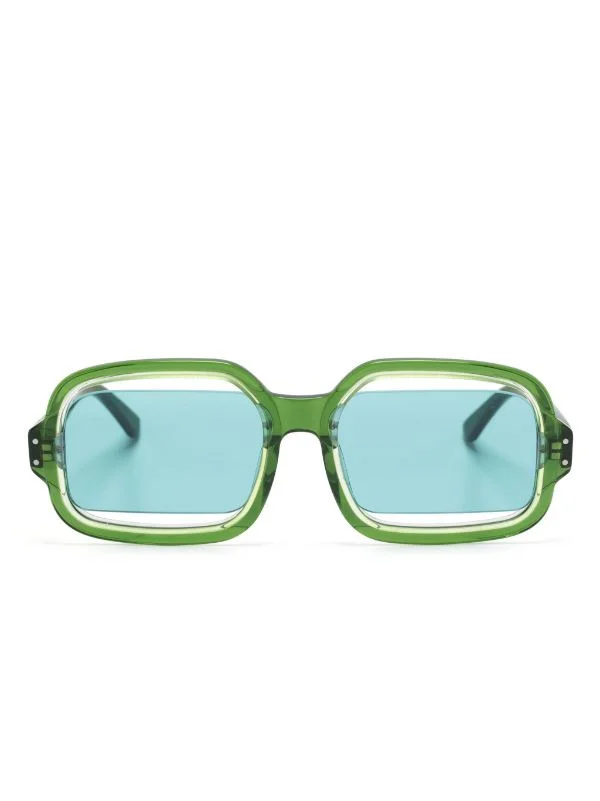 Olga Glasses in Dark Green from Henrik Vibskov's AW24 Studio Collection 'Daily Chewing Gum Therapy' Highlights - green - rectangular frame - light blue glass - comes with a protective case Made in China Designer ID: AW24STUD-A905 Color ID: 649 Dark Green Materials 100% Acetate