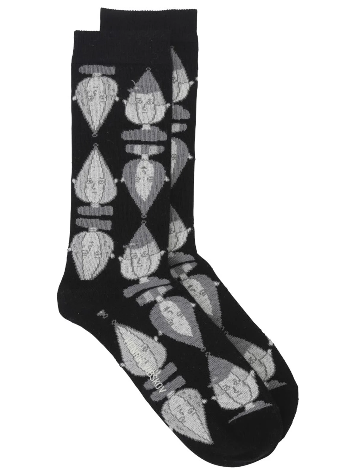 Onion Head Femme Socks in Black White Head from Henrik Vibskov's Spring Summer Key 2024 collection. Highlights - black, shite and grey - socks - over ankle - one size (36-40) Made in Portugal Designer ID: SS24KEY-S904 Colour ID: 978 Black White Head Materials 80% Organic Cotton 19% Polyamide 1% Elastane