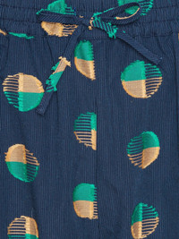 Shants circular-pattern drawstring trousers Highlights - Navy blue - Dots coupe circular pattern - Drawstring fastening - Two pockets - Embroidered details - Pinstripe texture Imported Composition Organic Cotton 100% Washing instructions Read Manufacturer Guidelines