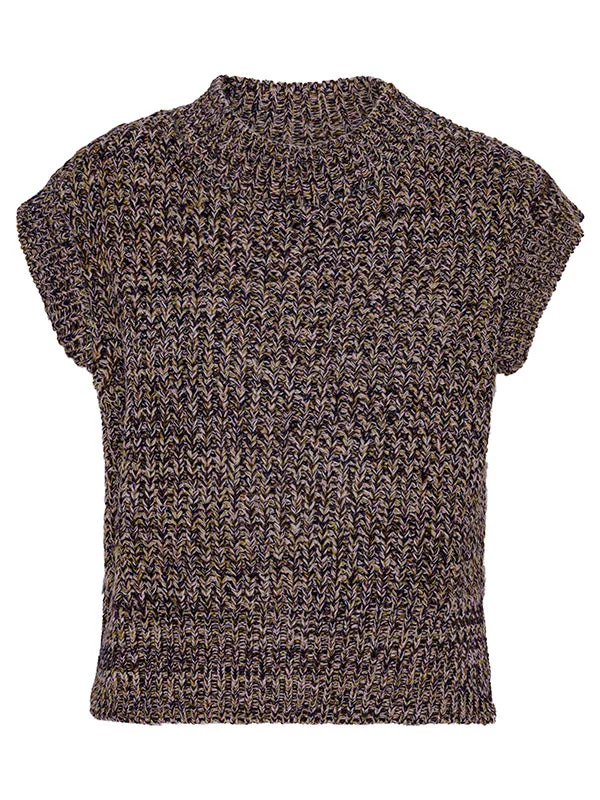 SIX END KNIT VEST - BLACK LAVENDER GREEN SQUARE