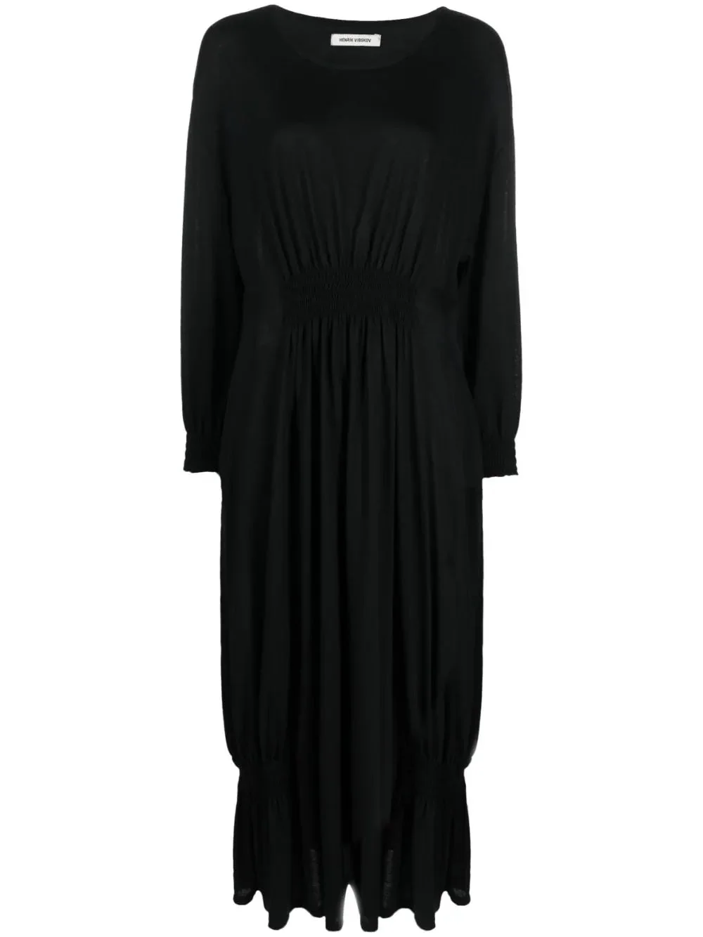 Wrinkle Jersey Dress in Caviar from Henrik Vibskov Autumn Winter 2023 collection 'Long Fingers To Ma Toes' Highlights - back - round neck - long sleeves - elastic waist Made in Portugal Composition: 100% Tencel Designer ID: AW23STUD-F807