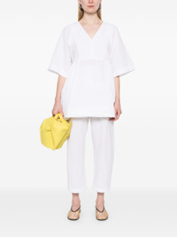 Materials 98% Organic Cotton 2% Elastane - Wash at max. 40 degrees - Do not bleach - Do not tumble dry - Iron at low temperature - Dry-Clean, normal cycle. Any solvent except trichloroethylene