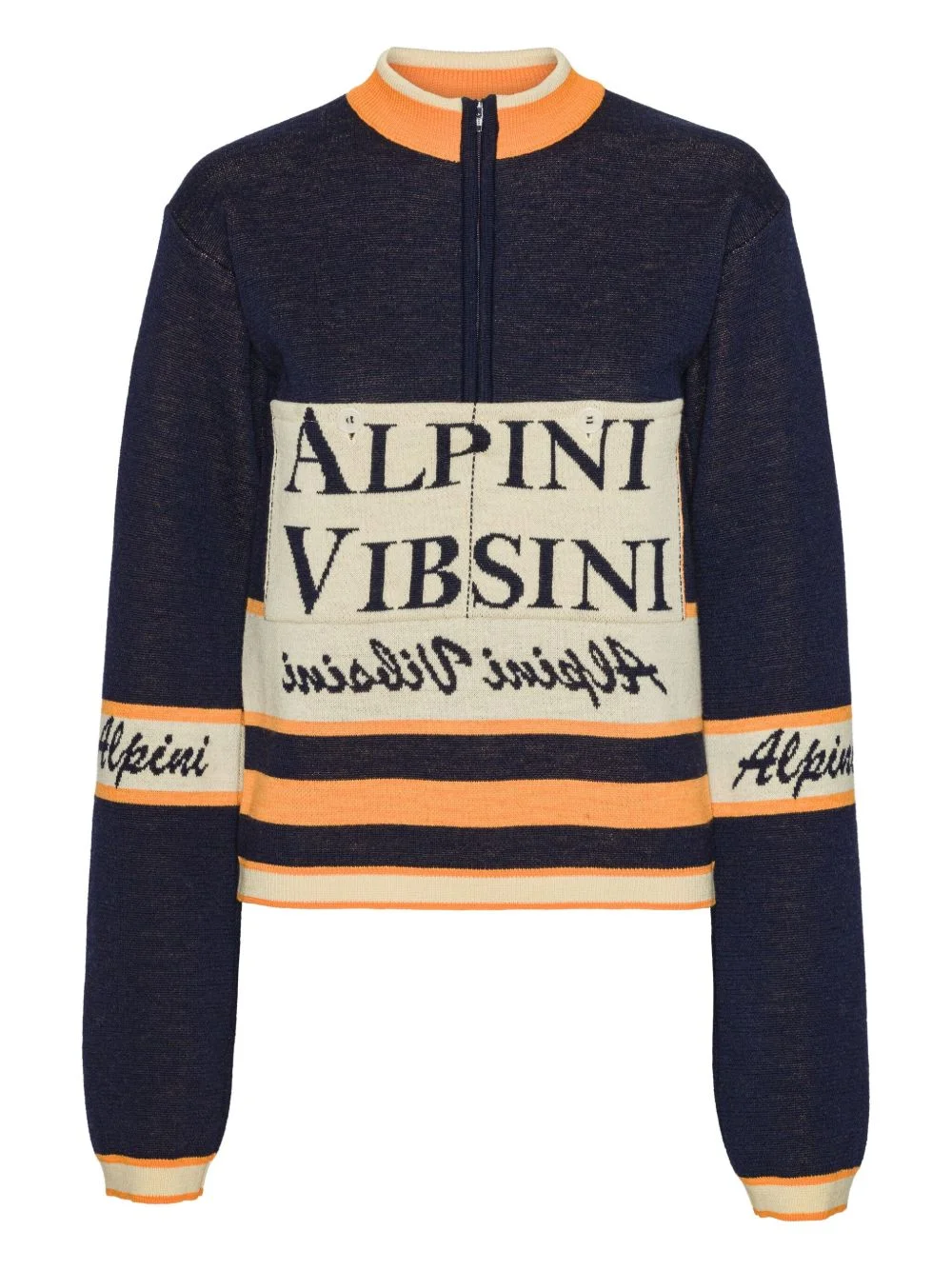 striped half-zip sweater Highlights - Navy blue - Striped - Half-zip fastening - Long sleeves - Ribbed trim Imported Composition Fabric 100% Washing instructions Read Manufacturer Guidelines