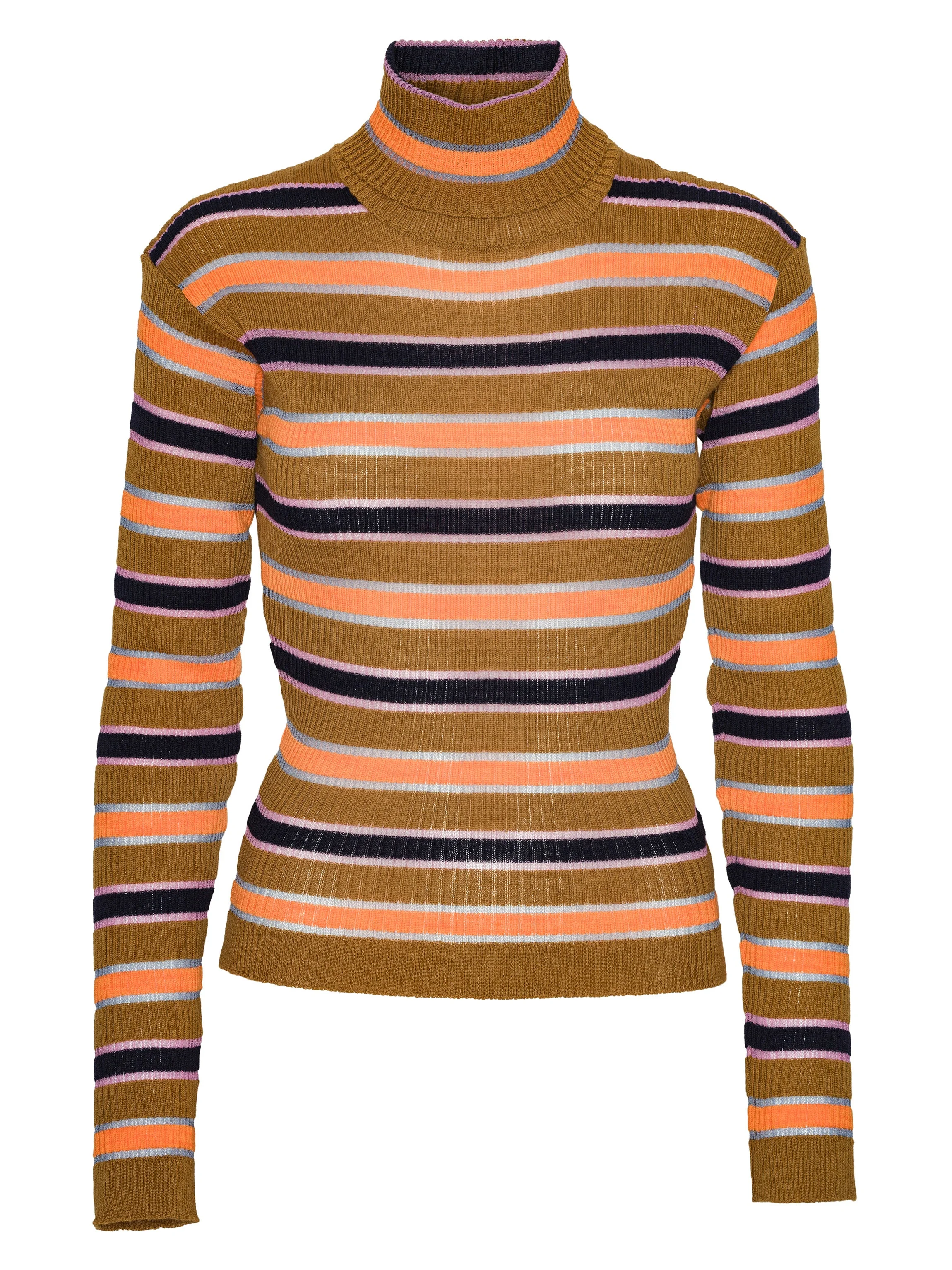 Line Turtleneck in Tapenade Stripes from Henrik Vibskov AW25 Key Collection Highlights - multicolour stripes - turtleneck - long sleeves - fitted design - ribbed - straight hem Model is 181cm tall and is wearing a size S Made in Bulgaria Designer ID: AW25KEY-F702 Colour ID: Tapenade Stripes Materials 100% Organic Wool