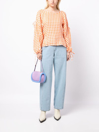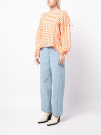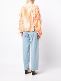Tapas check-print blouse Highlights - Tangerine orange - Linen/flax - Check print - Round neck - Drop shoulder - Long sleeves - Tied cuffs - Curved hem Imported Composition Body: Linen/Flax 100% SIZE & FIT Measurement SLEEVE LENGTH 17.71 in(45 cm) LENGTH 18.89 in(48 cm) BUST 40.15 in(102 cm) Shoulder Width 26.77 in(68 cm) Washing instructions Machine Wash
