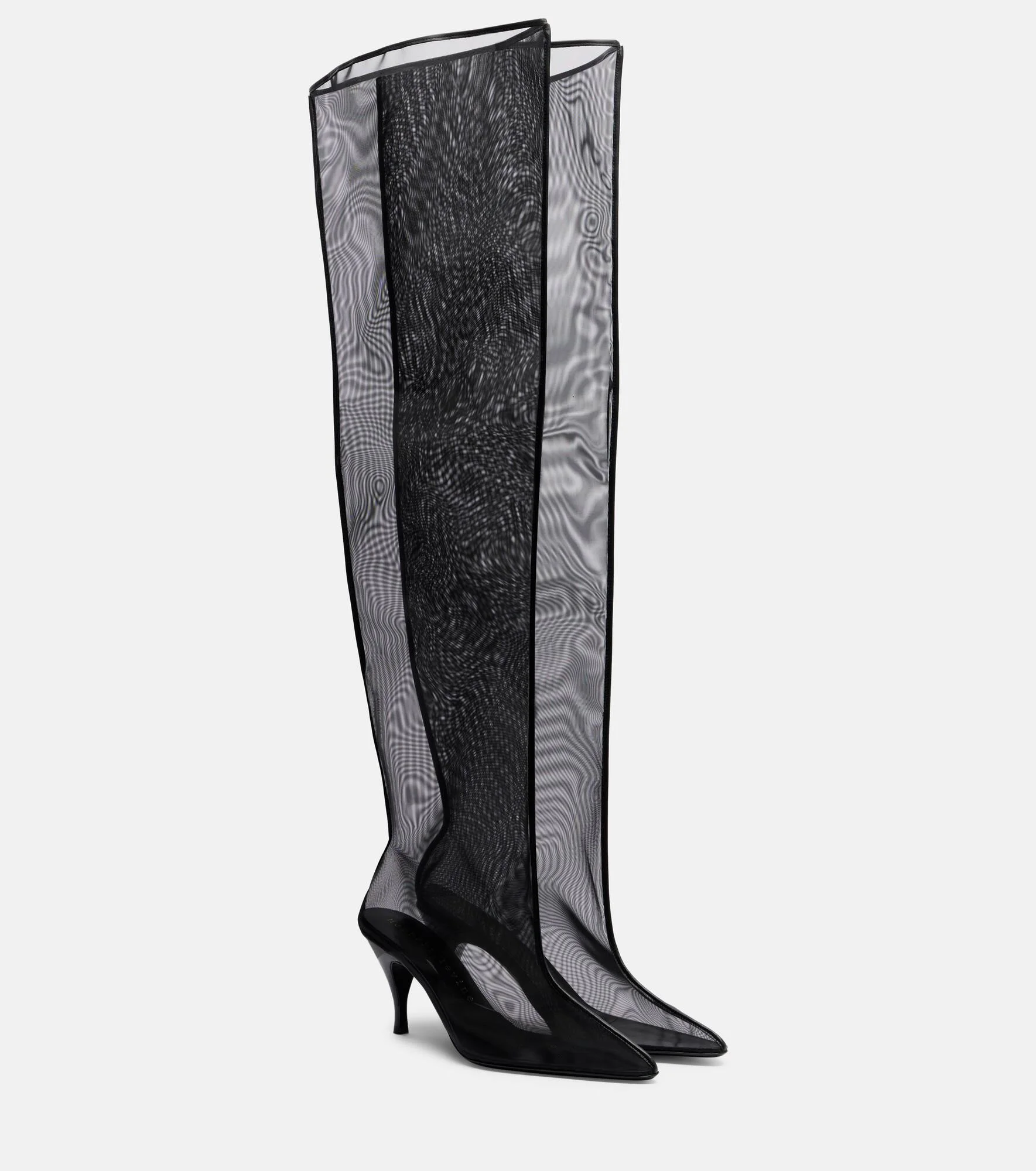 Herbert Levine’s designs are examples of timeless craftsmanship seamlessly paired with modern detailing. The Drawing A Blank knee-high boots are a bold pair made from black mesh with leather trims and 85mm heels. Product Details - Upper: fabric - Lining: leather - Sole: leather insole and sole - Color: black - Toe shape: pointed toe - Made in Italy - Includes: shoe box - Designer color name: Black - Trim: leather - Item number: P01139052 Size & Fit - True to size - For narrow feet, we recommend trying a half size smaller - European sizes - 7cm-3" heel - 62cm-24.5" shaft height (size EU 38) - 44cm-17.5" shaft width (size EU 38) - shaft width measured on largest part of boot