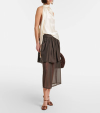 Herbert Levine’s designs are examples of timeless craftsmanship seamlessly paired with modern detailing. The Hidden Gem mules are crafted from luminous satin and finished with tonal crystal embellishments on the heels and front straps. Product Details - Upper: fabric - Lining: leather - Sole: leather insole and sole - Color: brown - Toe shape: square open toe - Made in Italy - Includes: shoe box, dust bag - Designer color name: Caramel - Item number: P01139048 Size & Fit - True to size - European sizes - 9,5cm-3.5" heel