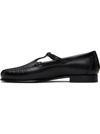 Handcrafted buffed calfskin loafers. · Moc toe · Pin-buckle strap at vamp · Suede interior · Stacked calfskin heel · Calfskin sole Supplier color: Black Calfskin. Made in Spain 252991F121008