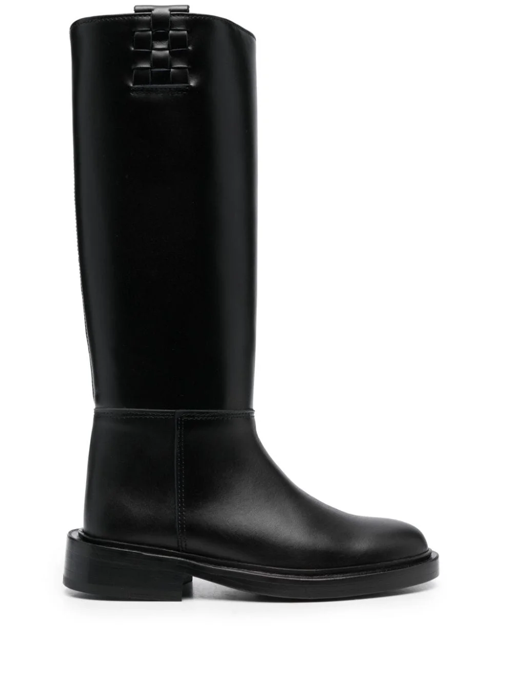 Anella interwoven-detail boots Highlights - Black - Calf leather - Smoothing finish - Interwoven detailing - Round toe - Slip-on style - Knee-length - Low heel Imported Composition Lining: Calf Leather 100% Outer: Calf Leather 100% Sole: Calf Leather 100% SIZE & FIT Measurement CIRCUMFERENCE 13.77 in(35 cm) HEEL 1.37 in(3.5 cm) HEIGHT 13.77 in(35 cm) Sole height 0.59 in(1.5 cm)