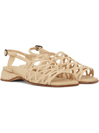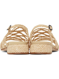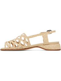 Handcrafted woven raffia sandals in beige. · Open square toe · Pin-buckle slingback strap · Logo embossed at padded leather footbed · Covered block heel with rubber injection · Nubuck sole Supplier color: Natural Upper: textile. Sole: leather, rubber. Made in Spain 251991F124005