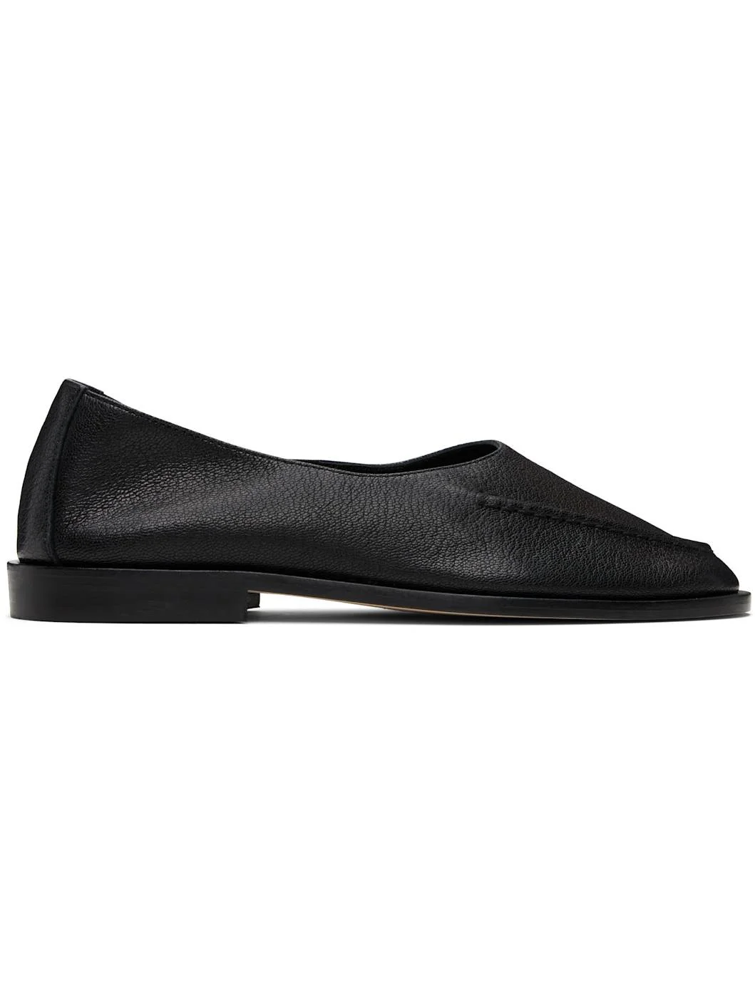 Handcrafted grained lambskin flats. · Moc toe · Suede interior · Stacked calfskin heel · Calfskin sole Supplier color: Black Upper: lambskin. Sole: calfskin. Made in Spain 252991F118004