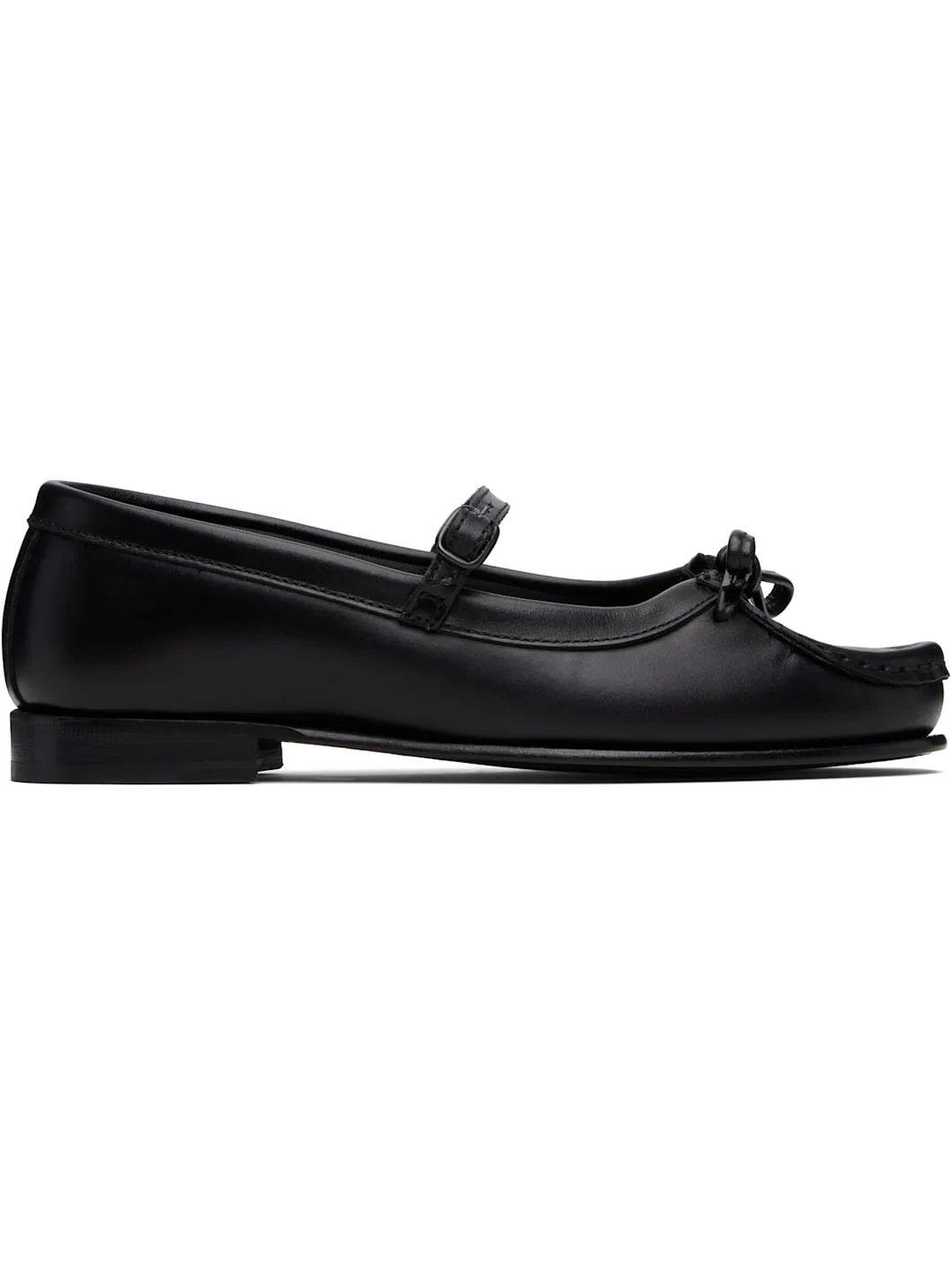 Buffed calfskin flats. · Moc toe with self-tie fastening · Mary-Jane-style strap at vamp · Leather block heel with rubber injection · Leather sole Supplier color: Black Leather. Made in Spain 252991F118009