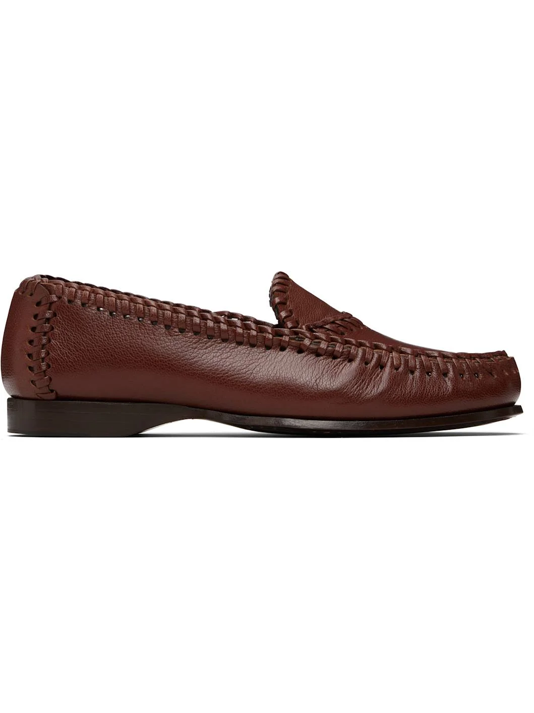 Grained lambskin loafers. · Hand-stitching throughout · Moc toe · Buffed lambskin lining · Stacked heel with rubber injection · Polished calfskin sole Supplier color: Chestnut Upper: lambskin. Sole: calfskin. Made in Spain 261991F121006