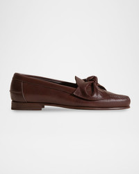 HEREU "Corbati" loafers in smooth calf leather finished with tonal stitching 0.50 in / 15 mm stacked heel Round moc toe Notched vamp with an oversized bow detail Slipon style Leather lining and outsole Made in Spain