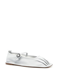 Dansa leather ballerina shoes Highlights - Ash grey - Calf leather - Square toe - Pintuck detailing - Pull-tab at the heel - Branded leather insole - Flat sole - Side buckle fastening Imported Composition Outer: Calf Leather 100% Lining: Calf Leather 100% Sole: Calf Leather 100% SIZE & FIT Measurement HEEL 0.39 in(1 cm)