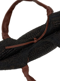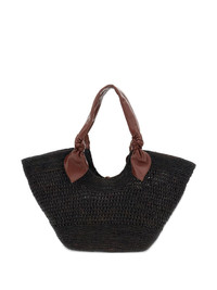 straw tote bag Highlights - Black - Brown handles - Hand or shoulder carry - Straw Imported Composition Outer: Bovine Leather 100%, Straw 100% SIZE & FIT Measurement DEPTH 4.72 in(12 cm) HEIGHT 11.81 in(30 cm) WIDTH 20.07 in(51 cm)