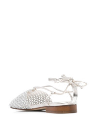 Forana sandals Highlights - Silver-tone - Tie-fastening ankle strap - Branded footbed - Low block heel - Almond toe Imported Composition Outer: Fabric 100%, Calf Leather 100% Sole: Calf Leather 100% Lining: Calf Leather 100%