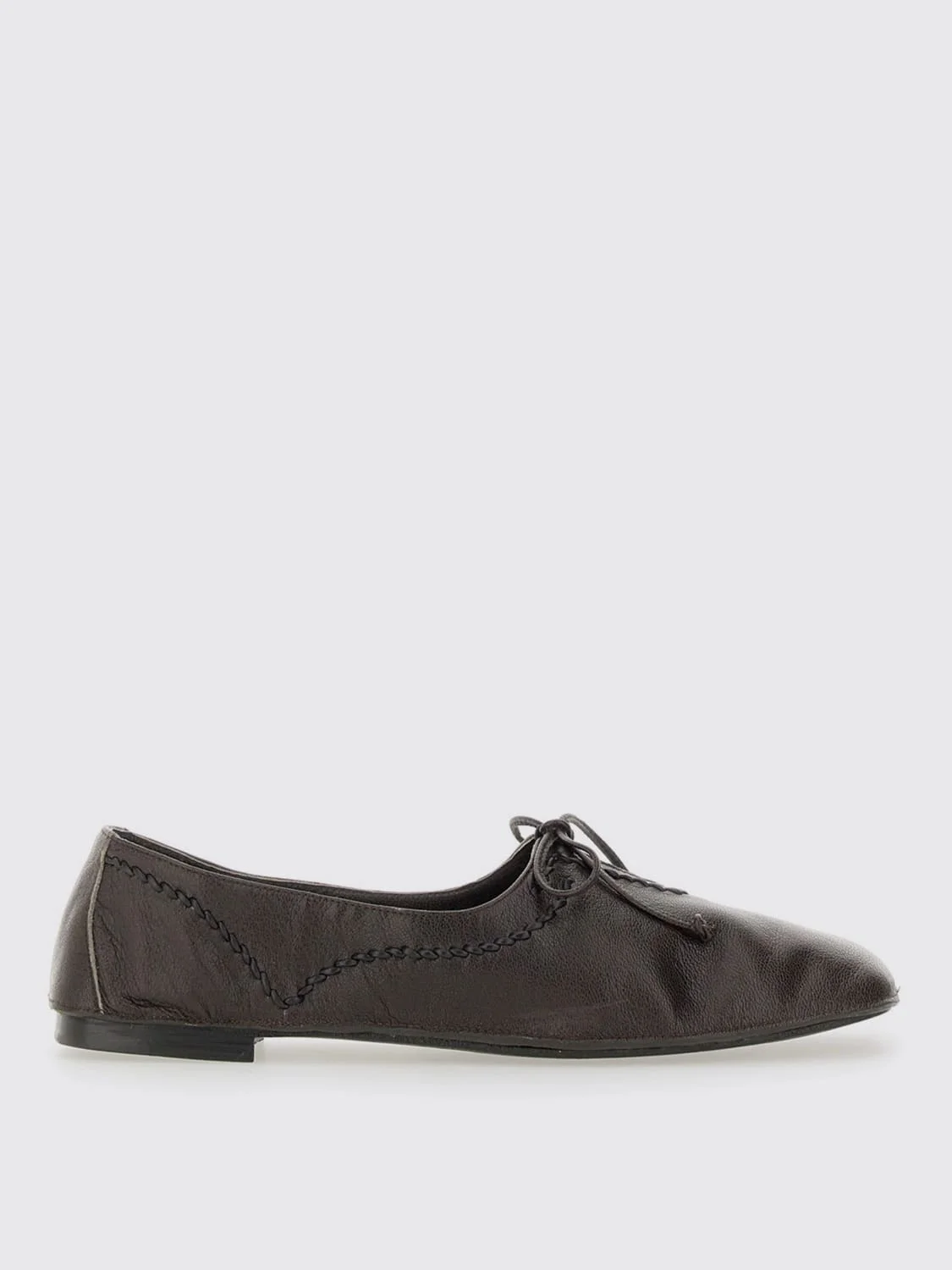 DESCRIPTION - Details: With bow - Lining: Leather, With logo - Toe: Round - Sole: Leather - Heel: Low heel - Pattern: Plain-colored DETAILS AND CARE Composition LEATHER SIZE AND FIT Sizes Heel: 1 cm Designer code: RASSWFA24 EBONY Giglio Code: H03189 Designer: Hereu Collection: Hereu Woman Category: Shoes Hereu