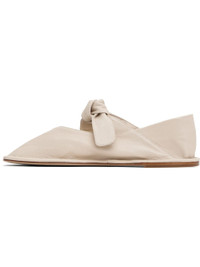 Handcrafted grained lambskin Mary Jane-style ballerina flats in off-white. · Square toe · Self-tie bow accent at vamp · Collapsible heel counter · Calfskin sole with rubber injection Supplier color: Cream Upper: lambskin. Sole: calfskin. Made in Spain 251991F118001
