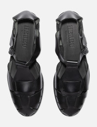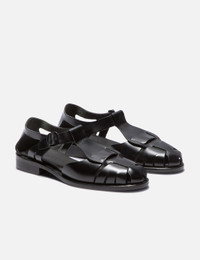 - Hereu - Pesca Sandal - Leather construction - Round toe - T-bar upper design - Buckle-fastening ankle strap - Flat leather sole - Color: Black - Material: 100% Leather - See more Sandals and Shoes