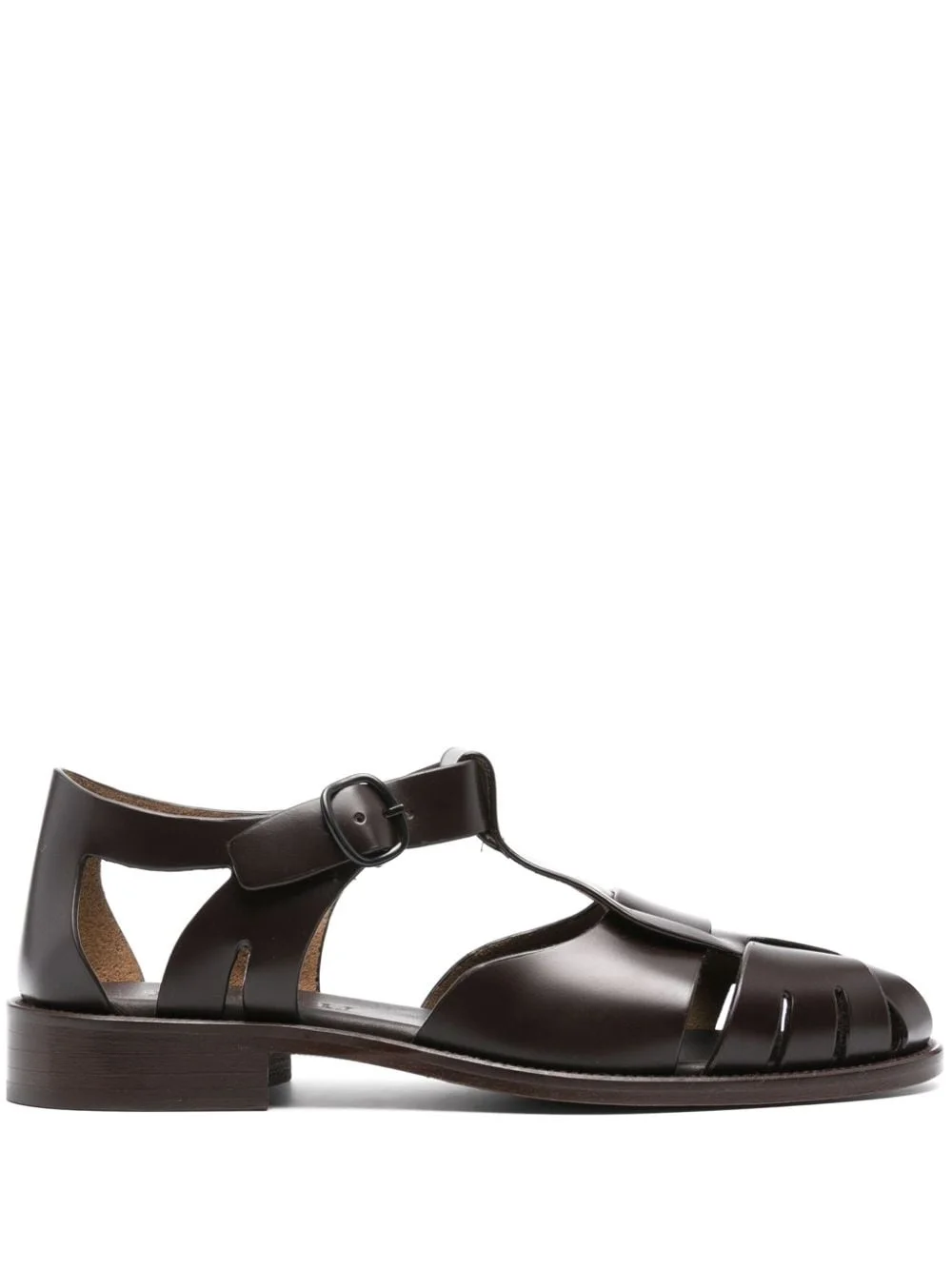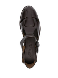Pesca leather sandals Hereu showcases its leatherwork mastery in the design of these Pesca sandals. They’re handmade from supple brown leather to an interwoven caged design with side cut-outs and a T-bar strap. Highlights - Cedar brown - Calf leather - Almond toe - T-bar strap - Branded leather insole - Leather sole - Side buckle fastening Imported Composition Sole: Calf Leather 100% Outer: Calf Leather 100% Lining: Calf Leather 100% SIZE & FIT Measurement CIRCUMFERENCE 18.89 in(48 cm) HEEL 0.98 in(2.5 cm) Sole height 0.27 in(0.7 cm)