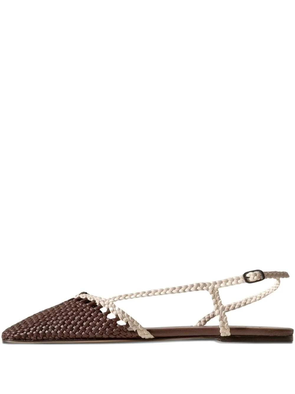 Rondaia wov-leather slingback flat pumps Highlights - Brown - Woven leather - Slingback strap - Buckle fastening - Square toe - Flat sole Imported Composition Outer: Lambskin 100% Lining: Leather 100% Sole: Leather 100%