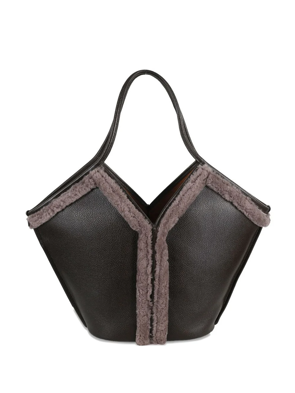 shearling-trimmed tote bag Highlights - Dark brown - Textured leather - Shearling trim detail - Top handles - Open top Imported Composition Leather 100%