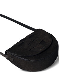 Sinia mini bag Highlights - Black - Magnet flat closure - Flat pocket on interior - Adjustable buckled strap Imported Composition Outer: Calf Hair 90%, Calf Leather 10% Lining: Calf Leather 100% SIZE & FIT Measurement DEPTH 2.36 in(6 cm) HEIGHT 7.48 in(19 cm) WIDTH 8.26 in(21 cm)