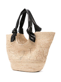 straw tote bag Highlights - Light beige - Tie-top fastening - Two flat shoulder straps - Knot detailing - This piece comes complete with a protective dust bag. Imported Composition Outer: Calf Leather 100%, Straw 100% SIZE & FIT Model measurements Height 5 ft 11 in(1.8 m) Bust/Chest 32.67 in(83 cm) Hips 36.22 in(92 cm) Waist 24.4 in(62 cm) Measurement DEPTH 4.72 in(12 cm) HANDLE 11.41 in(29 cm) HEIGHT 11.81 in(30 cm) WIDTH 20.07 in(51 cm)