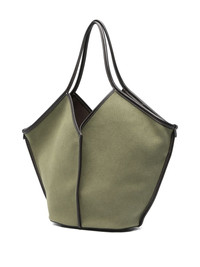 x WOK Calella shoulder bag Highlights - Green - Thin shoulder handles - Open top - Removable zip pouch - Main compartment Imported Composition Outer: Cotton 90%, Calf Leather 10% Lining: Organic Cotton 100% SIZE & FIT Model measurements Height 5 ft 10 in(1.77 m) Bust/Chest 32.28 in(82 cm) Hips 35.03 in(89 cm) Waist 25.19 in(64 cm) Measurement DEPTH 4.72 in(12 cm) HEIGHT 11.81 in(30 cm) STRAP 17.71 in(45 cm) WIDTH 9.84 in(25 cm)