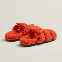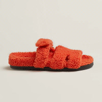 Techno-sandal in woolskin with anatomical rubber sole and adjustable strap. A sleek design for a comfortable casual look. Made in Italy Product details Black rubber sole Orange woolskin insole and lining