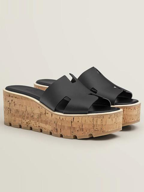 Sandal in calfskin with "H" cut-out. A light cork platform for a daring yet comfortable style, perfect for summer. Made in Spain Measures 2.7" heel | 1.2" front sole-heel height difference Product details Natural rubber sole Black goatskin insole and lining