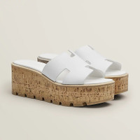 Sandal in calfskin with "H" cut-out. A light cork platform for a daring yet comfortable style, perfect for summer. Made in Spain Measures 2.7" heel | 1.2" front sole-heel height difference Product details Natural rubber sole White goatskin insole and lining