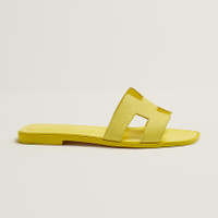 Sandal in Epsom calfskin with iconic "H" cut-out. An iconic Hermes style, this silhouette is an essential piece in every wardrobe. Made in Italy Product details Natural leather sole Turmeric yellow leather heel Turmeric yellow goatskin insole and lining